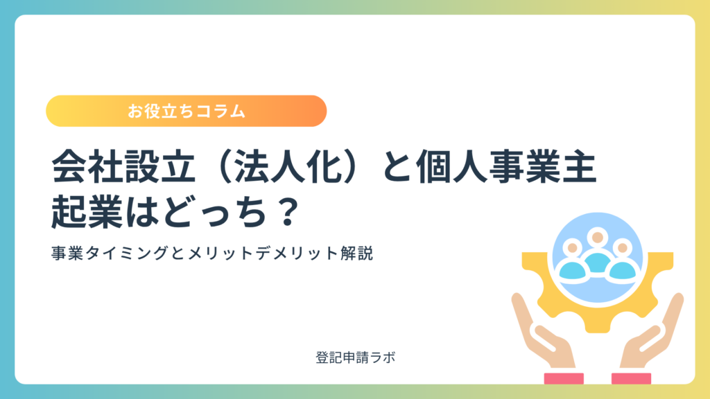 会社設立(法人化)と個人事業主、起業はどっち?事業タイミングとメリットデメリット解説