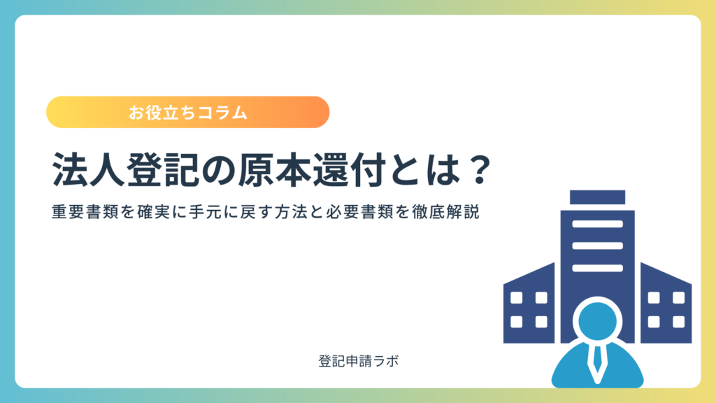 法人登記の原本還付とは何か:制度の基礎知識 法人登記の手続きにおいて、原本還付は「提出した重要書類を手元に戻す」ための必須知識です。まずは、この制度がどのよう... -