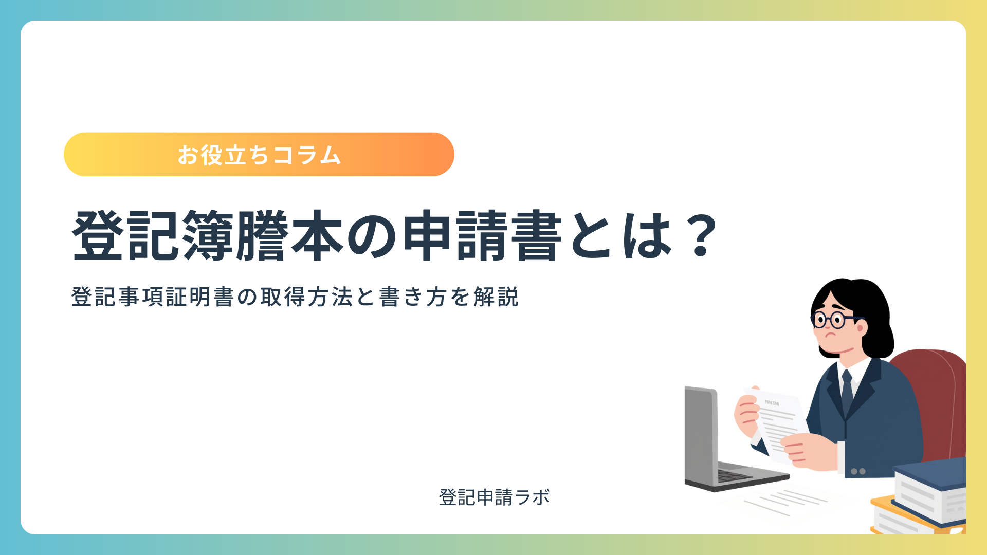 登記簿謄本の申請書とは、法務局に対して登記事項証明書の交付を請求する際に、請求内容を正式に伝えるための書面です。登記簿謄本は法人の商号や本店所在地、役員構成などの登記情報を証明する公的書類であり、その取得には一定の手続きが定められています。