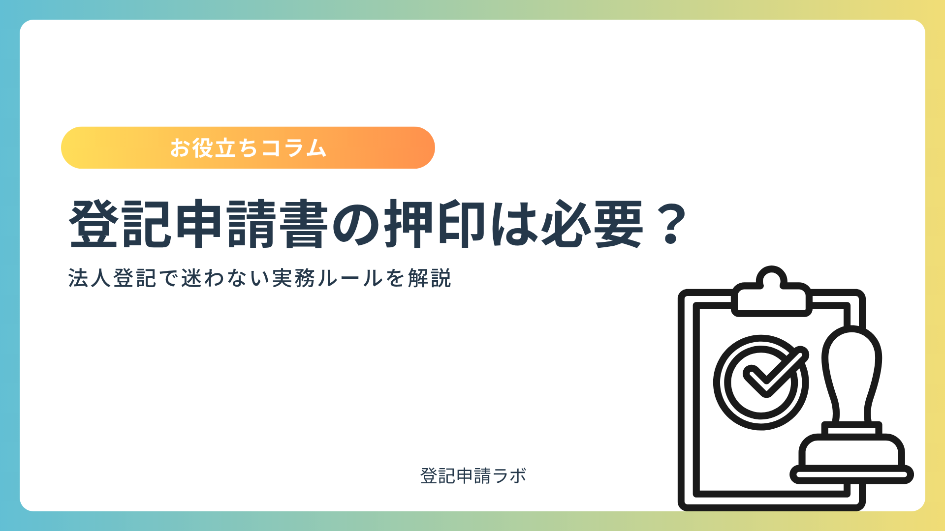 本記事では、登記申請に関する案内や例を通じて、実務で用いられる考え方を整理しています。自分で登記申請を行う場合は、内容面だけでなく形式面の要件を満たしているかを意識することが重要です。押印に関する基本ルールを理解したうえで、余裕をもって準備を進めることが、円滑な登記完了につながります。